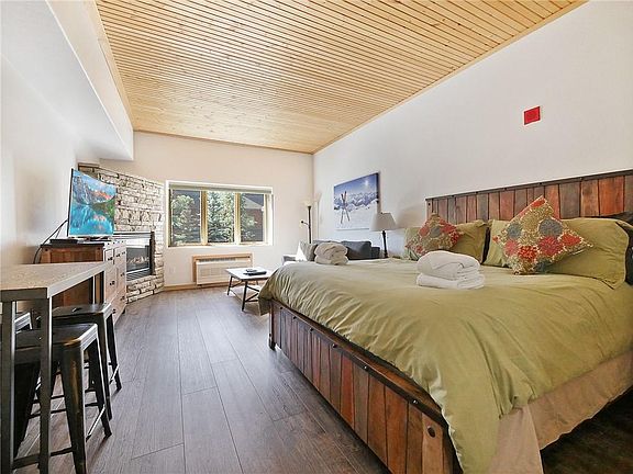 Such a great opportunity here at this ski area facing studio at Gateway in Keystone. So much to enjoy here, wood paneled ceiling, newer floor, and a great use of space. Use it as a weekend crash pad, rental property, or both. You'll enjoy walking to the lifts, shops, and restaurants and there's even a new coffee shop and brew pub in the building! Underground parking, pool, hot tub, and an amazing location you'll enjoy for many years. Ask about the rental history!