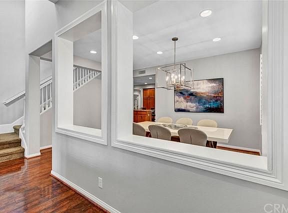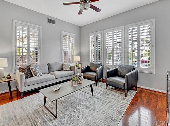 WELCOME to this gorgeous home with beautiful curb appeal and meticulous grounds! Enter the bright & light foyer that greets you into this fluid floorpan that is perfect for entertaining! The formal living room has views of the front yard, the separate formal dining room is perfect for holiday dinners and both spaces are open and bright! Wait til you see the kitchen with a WOLF range 6 burner cooktop for some serious cooking, heavy duty double stainless steel sink w/decorative faucet, double ovens, Bosch dishwasher and microwave which are all stainless steel! There is also a large kitchen island that affords ample bar seating and is open to an awesome size family room w/fireplace & access to rear yard. Plenty of space for family to congregate! That's not all! There is also a downstairs bedroom with a bath that is perfect for the in law's or guests. Ascend the stairs to 2nd level living quarters that has a work space built-in at the landing, there is also a convenient laundry room with sink and room for full size washer/dryer, 3 bedrooms plus bathroom and a sumptuous master suite all finish off the 2nd floor! The spacious master suite is private and is connected to a huge bathroom with soaking tub, walk in shower, double vanity's, make up counter and his & hers mirrored walk-in closets! Manicured backyard with patio is a great place for play and outdoor dining! 3 car tandem garage with built-in cabinets and work desk! Freshly painted exterior, Armstrong Premium Brand Illusions wood look floors, granite counters, glass subway tile back-splash, plantation shutters, some new light fixtures, ceiling fans, rain gutters, newer water heater, reverse osmosis water filtration and whole house soft water system. Neighborhood has paths, trails, tot-lot and a 24 hour guard gated entrance. Close to Lake Mission Viejo, market, restaurants, toll road and freeways! Don't miss this great beauty!