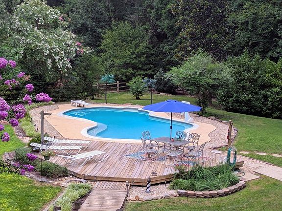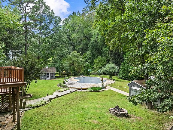 Cozy wood-burning fireplaceFinished basementHuge walk-in closetIn-ground poolPrivate bathTiered deckMature trees