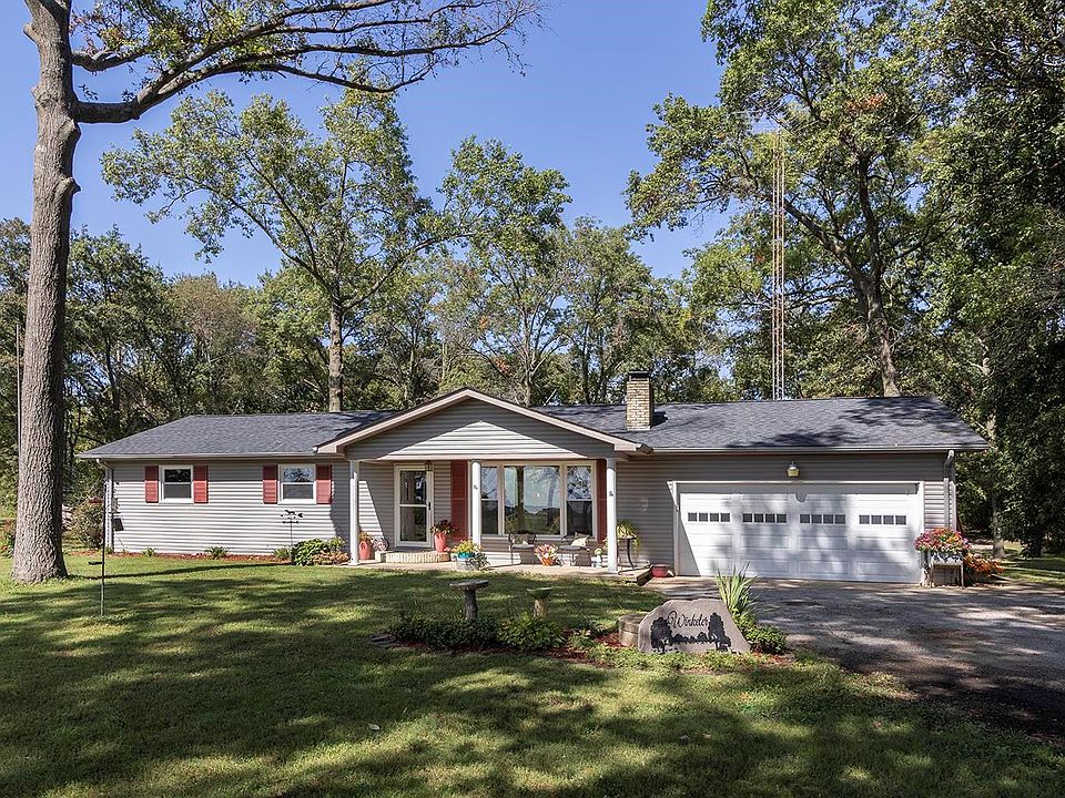 SOLD BEFORE PRINT. Welcome to your dream retreat on 10 picturesque acres! Ranch-style home is nestled on a serene, wooded lot featuring a stunning 1.25-acre stocked lake, perfect for fishing or enjoying quiet afternoons by the water. Expansive kitchen, equipped with abundance of custom cabinets that offer both functionality and style. The adjoining family room, highlighted by a large picture window, invites natural light and offers beautiful views of the surrounding landscape. Large primary bedroom, updated private bathroom featuring a stylish tile walk-in shower. A second bedroom and a well-appointed hall bath complete the main floor, making it ideal for guests or family. Finished lower-level walk-out basement, Large Great Room and wood-burning fireplace—perfect for cozy evenings with loved ones. The expansive 40 x 80 pole barn provides ample storage for all your hobbies and projects. This home is a true haven for nature lovers and those seeking a peaceful lifestyle. Brand New Roof