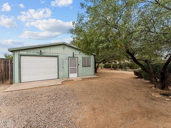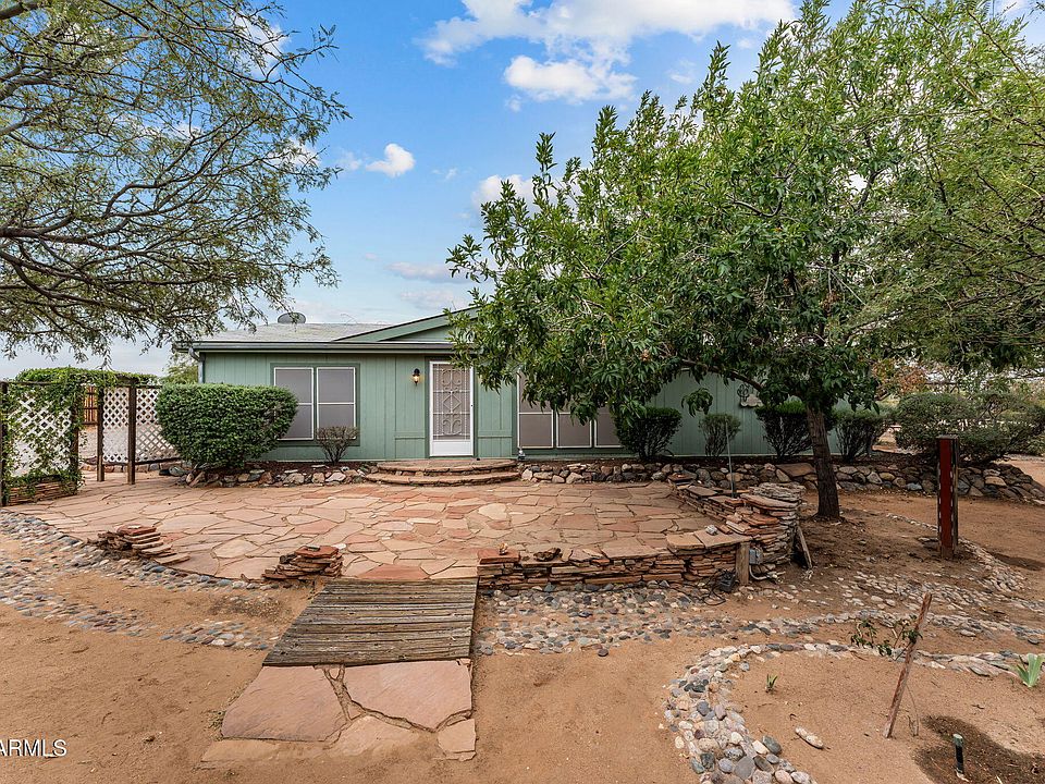 First time on the market! This inviting 3BD, 2.5BA manufactured home features a desirable split floor plan and abundant natural light through numerous windows. Set on a beautifully landscaped large lot with lush high-desert vegetation, both front and backyards feel like a private park. Enjoy a covered back patio and flagstone areas perfect for outdoor living. The detached garage offers a mini-split, spacious craft or quilting room which will accommodate a long arm machine.The back of the garage features a workshop that any creative will love! Additional feature is a large metal-cover for parking, and a charming garden area. This home is perfect for anybody wanting the peace & privacy of the quaint quiet town of Congress.