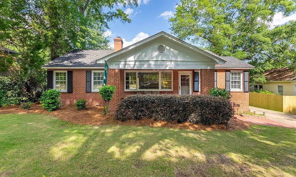 Charming historic brick home in the Lakebottom community. Covered front porch welcomes you to a peaceful block with majestic oak trees. Once inside, beautiful original hardwood floors are thru out with tiles in the kitchen and bath. Living room with original gas fireplace with marble surround. Gorgeous crown moldings. Formal Dining. Kitchen with a full compliment of appliances. Bedroom 1 off the kitchen is a great flex space for a 2nd Den or Office. Recently renovated full bath. Plus two additional spacious bedrooms at the end of the hall. Laundry Room with access to back. Fully fenced back yard has double gate and pull thru driveway for access to separate detached garage/storage building. Back yard also includes a 10x14 brick paver patio with a great backyard for play and entertaining. Just 2 blocks from Lakebottom Park w playground, walking trail, sport fields, basketball & tennis courts. Centrally located near restraurants, shopping, doctors and schools.