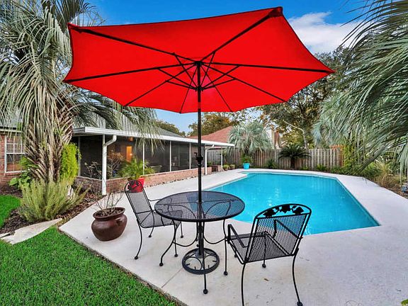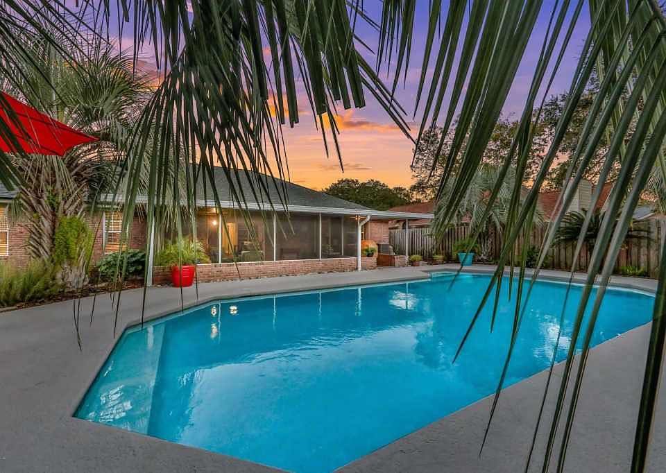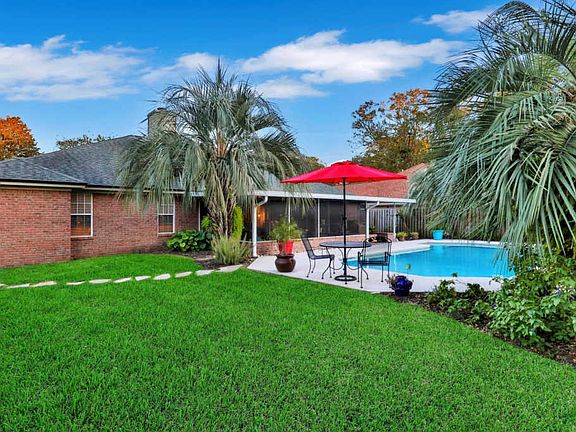One story brick home with a POOL less than 5 miles to the beach! Beautiful wood floors lead you to french doors out onto the screened porch overlooking the recently refinished pool and fenced back yard. Split floor plan keeps the master suite private. Welcome to a well kept home in a quiet, established, coveted neighborhood with majestic oaks: Covington Creek.Open House Saturday 12/7 11:00-1:00