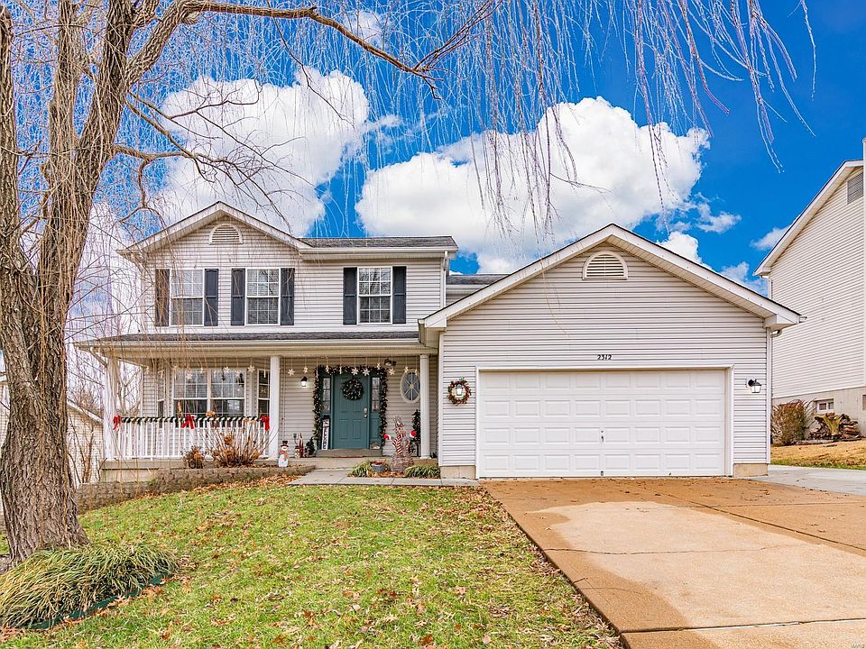4 bed, 3 bath two story home with over 1900 sq. feet of living space, located in Ambrose Crossing subdivision in sought after Fox school district, Seckman schools. Open floor plan with predominately hardwood flooring & 4 bay windows on main level. Spacious kitchen with breakfast room, newer countertops & kitchen sink. Atrium door in breakfast room leads to cedar wood deck with stairs to above ground pool. 2nd level has 4 bedrooms and 2 full baths. Master bedroom with vaulted ceiling, ceiling fan with light. En suite master bath with double sink vanity & updated ceramic tile shower. Hall bath has newer vanity and ceramic tile flooring. Bedrooms 2, 3 & 4 feature ceiling fans with lights and newer laminate flooring. Walk out lower level leads to newer paver patio and utility shed. Home has expanded driveway for additional parking space, newer HVAC, water heater, roof and 6 panel doors throughout.
