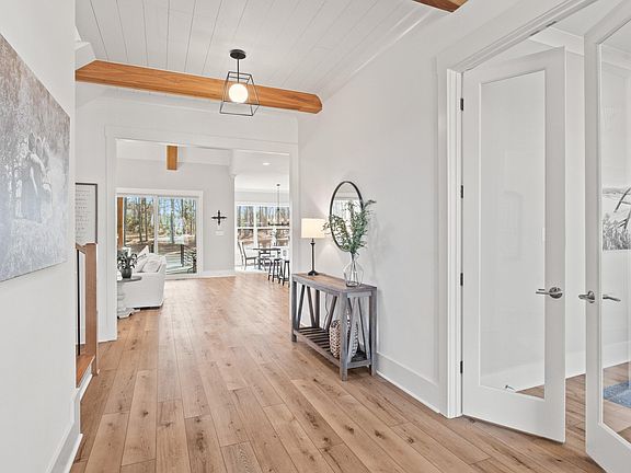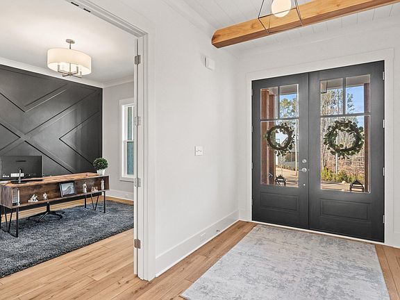 Step into a realm of unparalleled luxury within this exceptional 4-bedroom, 4.5-bathroom home, complete with a dedicated home office and a sprawling 3-car garage. As you enter the home, the main level unveils an open-concept design accentuated by soaring vaulted ceilings adorned with natural accent beams, exuding an air of refined elegance. As you explore further, the main-level primary suite features a bedroom closet that surpasses expectations, along with a gracious guest room positioned at the front of the house for convenient access and enjoyable privacy. Traverse the enduring LVP flooring spanning the entirety of the first level, leading to a wall of sliding glass doors that invites you to experience a captivating synergy between interior elegance and outdoor allure. A welcoming fireplace invites you to unwind in tranquility while overlooking the meticulously landscaped patio, perfect for al fresco dining and casual gatherings. With ample space and endless possibilities, envision crafting your own private sanctuary tailored to your desires. Ascending to the second level unveils two additional bedrooms and a spacious bonus room, accompanied by a flex room accessible via a discreet hidden door and a secondary office space complementing the first-floor office. Immerse yourself in the sheer opulence and refinement that saturates every corner of this incomparable abode.