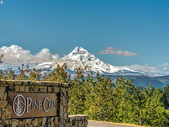 Lot 9: 2.09ac. Stunning Mt Hood & far-reaching Columbia River Gorge Views. Slice of heaven! Flat building envelope. Abuts NSA. Pine Crest offers panoramic views of Mt Hood & Hood River Valley. 84 acres w/40% dedicated to green space. All utilities including Natural Gas, Power, Water, flexible 6k sqft building envelope on each lot. Under an hour to PDX International, & Portland. Minutes to Hood River!