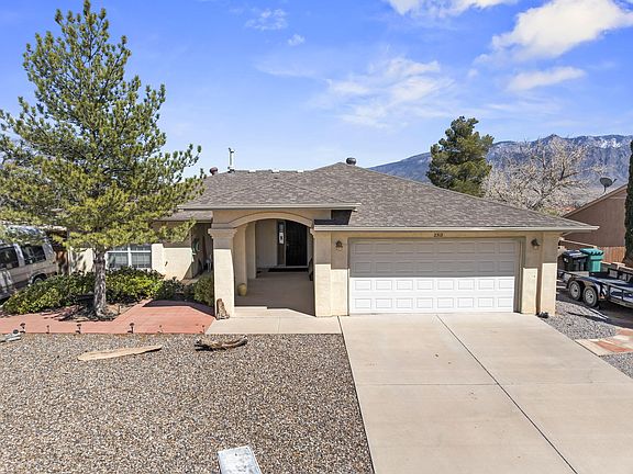Turn Key ready 3 Bedroom, 2 Bath, 2 car garage on .22 acre lot. Refridgerated Air, No HOA, No polybutylene, Workshop, Fire pit, planters, unobstructed view of the Sandia mountains, and a 40'10'' x 13'2'' Sunroom are some of the many great features this property has.