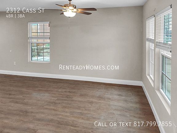 SPECIAL PROMO: SIGN A LEASE BY FEBRUARY 15TH AND GET $1000 OFF MARCH'S RENT THIS PROPERTY ACCEPTS ONLY SELF-GUIDED TOURS, TO SCHEDULE ONE, PLEASE FOLLOW THE LINK BELOW: Nestled in the heart of Fort Worth, this stunning residence offers the perfect blend of modern elegance and timeless charm. Boasting 4 bedrooms, 2 full bathrooms, and a convenient half bathroom, this meticulously crafted home is an oasis of comfort and luxury. Step inside to discover a spacious and light-filled interior, adorned with high-end finishes and thoughtful details at every turn. The open-concept living area provides an ideal space for entertaining guests or simply unwinding with loved ones. Gleaming hardwood floors flow seamlessly throughout, complemented by stylish fixtures and designer touches. The gourmet kitchen is sure to delight the culinary enthusiast, featuring sleek countertops, stainless steel appliances, and ample cabinet space for all your storage needs. This captivating property offers the perfect blend of modern elegance and timeless charm, boasting 4 spacious bedrooms and 2 full bathrooms along with a convenient half bath. Outside, the expansive backyard beckons with its lush landscaping and ample space for outdoor activities. Whether you're hosting a barbecue, gardening, or simply soaking up the Texas sunshine, this sanctuary is the perfect setting for creating lasting memories. Conveniently located near top-rated schools, parks, shopping, dining, and entertainment options, this home offers the best of suburban living with easy access to urban amenities. Don't miss your chance to make this exquisite property your own. Schedule a showing today and experience the epitome of luxury living at 2312 Cass St, Fort Worth! Appliances will be installed upon move-in. Pet Friendly. No breed or weight restrictions. $250 Non-Refundable Pet Deposit per pet. QUALIFICATIONS: Security Deposit of 1 month of rent Income 3x rent No recent evictions Credit check Background check (we review) Approvals are at Landlord's discretion All RentReady Homes residents are enrolled in the Resident Benefits Package (RBP) for $25/Month which includes Air Filter Delivery, Renters Insurance, Rent Rewards, Positive Credit Reporting and much more! More details upon application. We DO NOT advertise on Facebook, Craigslist, or any platform that is not solely for rental listings. We never ask for deposits until a proper credit check is run through TransUnion SmartMove and we have a signed lease that was sent to your email from SignNow. We can ALWAYS take deposit in person, in the form of money order or cashier's check at our Downtown Dallas office. This property can use Obligo Insurance in lieu of a traditional security deposit.