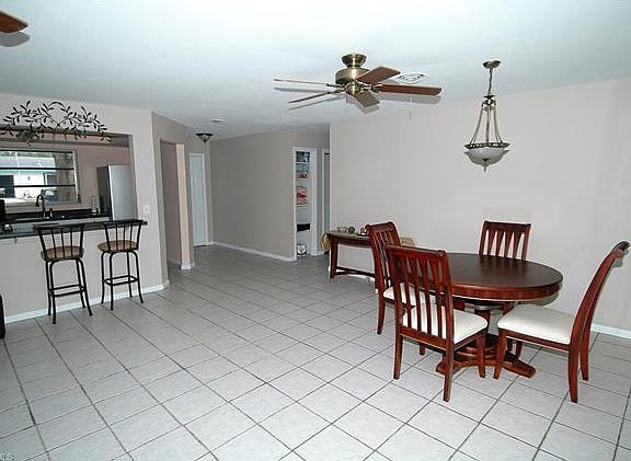Nestled behind the Bell Tower Shops, on a quiet tree lined street, this comfortable and affordable 2 bedroom, 2 bath, concrete home boasts an open floor plan, freshly painted kitchen with touch-less stainless steel Samsung bottom mount refrigerator, Bosh dishwasher, glass top range and updated thermofoil cabinetry. Completely re-plumbed with a Flow Guard Gold CPVC plumbing system. Tile flooring throughout, updated bathroom fixtures, separate indoor laundry room and adjacent storage off the carport. Glass sliders lead to a large tiled screened lanai, great for enjoying the Florida lifestyle. Partially fenced back yard and steel storage shed for your toys. Lovely air conditioned office off the carport. This well-loved home has good bones and is ready for a new owner to take over and add his or her personal touches. The desirable Ft Myers Villas neighborhood is close to FSW, shopping, dining, RSW International airport, and the beaches. The Villas have an active voluntary Civic Association (No HOA fees).