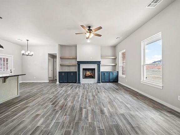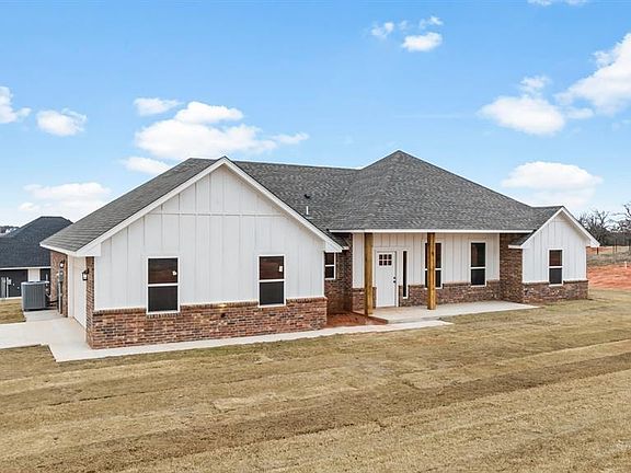 Home sits on 1.04-acre lot in the growing Greys Harbor addition! Completed & move in ready! With a 1,654 square foot floor plan. 3 bedrooms , 2 bathrooms, & 2 car garage. Open floor plan with gas fireplace. Island, pantry, and stainless appliances in the kitchen. Master bath with walk-in shower, dual vanities, and walk-in closet. Covered porch & patio. Full concrete drive. Metal shops allowed! Only three miles from the Winter Creek golf course. Blanchard & Middleberg schools.