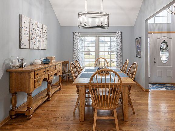 Beautiful is the only word to describe this 3 bedroom/2 full bath RANCH home in KyLyn's Ridge of Yorkville. Be greeted by a sun filled, vaulted ceiling entryway as you open the front door. Inside you will find an open concept main living space with tons of windows overlooking the private back yard and hardwood floors throughout this main space. Kitchen offers solid surface counter tops, tons of cabinet space, ss appliances and a peninsula for your morning coffee. There is also plenty of space for a table plus a separate dining room for entertaining. Master bedroom with patio door access to the fully fenced back yard, walk in closet and newly remodeled master bath with walk in shower. You will also find 2 additional bedrooms with oversized windows and a refreshed hall bath. First floor laundry room that doubles as a mud room. Full basement offers roughed in plumbing for a future bathroom, a workout/bonus room and a large workroom for the project minded buyer. The lovely backyard of this home offers a large, concrete patio, 28 foot above ground pool with all new mechanicals and maintenance free deck plus a shed. No backyard neighbors here!! Conveniently located near shopping and restaurants. Come take a look - you will love what you see.
