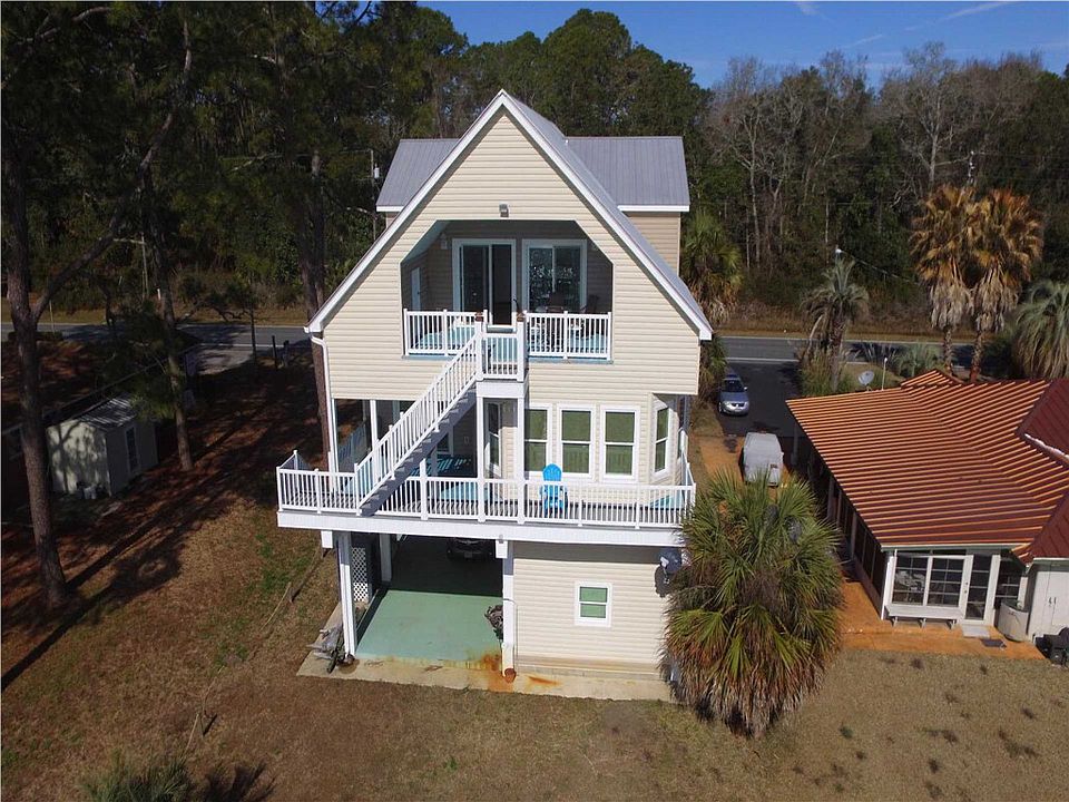 Bay front home with panoramic views, two story, immaculate, well maintained, Paved parking, hardwood and tile floors throughout, Custom built cabinet, impact windows, foam insulation, metal roof, Full access elevator,separate air conditioner,heater, water heater and electricity per floor, large closets, central vacuum system. Main floor has full kitchen, Great room with 9 water view windows 2 bedrooms, 1 master bath suite with Jacuzzi bath, separate shower, privately toilet with a bidet, laundry room with washer and dryer, utility sink. Top Floor is a family room/dining area,functional kitchen, 4 bedrooms, 2 full baths, washer & dryer hook up, fully covered porch. City water and sewer. To many extras to list call for appointment!
