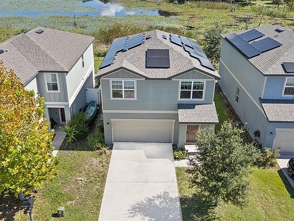 One or more photo(s) has been virtually staged. Skip the wait, skip the stress! This upgraded, newer-built home is ready to impress AND comes with a stunning WATER VIEW! This stunning 3 bedroom PLUS LOFT home offers OVER 1,800 sq. ft. of living space in the highly desirable community of Lincoln Oaks. Step inside to an open-concept design highlighted with upgraded luxury vinyl flooring gracefully flowing throughout the living space. The chef-inspired kitchen features 42” shaker cabinetry, GRANITE countertops, stainless steel appliances, and a massive island that flows seamlessly into the living and dining areas, perfect for entertaining. Upstairs, you’ll find a versatile loft space with endless possibilities, plus spacious guest rooms (one with a walk-in closet), each with ceiling fan/lights. The convenient upstairs laundry includes washer and dryer. Your primary suite is a true retreat with breathtaking water views, a spa-like en-suite, and a huge walk-in closet. Outside, relax on your patio overlooking the peaceful water, your own slice of Florida paradise. Added bonuses include solar panels for low-cost ownership, an irrigation system, and a termite bond. This home is truly move-in ready! Lincoln Oaks is nestled in historic DeLand, FL, surrounded by rolling hills and vibrant living. Enjoy close proximity to schools, shopping, and dining. Explore Artisan Alley, brimming with local art, boutiques, wine bars, and a weekly farmer’s market. For outdoor adventures, kayak or canoe along Spring Garden Run beside the Lake Woodruff National Wildlife Refuge. Don’t miss this majestic home, schedule your private tour, TODAY!