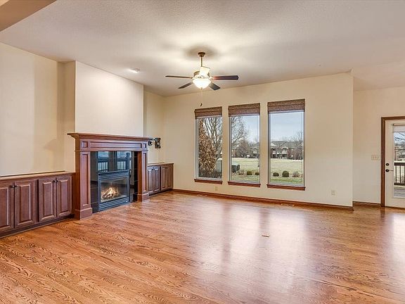 Beautiful ZERO ENTRY Ranch on a Quiet Cul-de-Sac that backs up to the Oaks Golf Course! Covered front Porch enters into spacious Foyer with Real Wood Floors throughout main level. Your Eyes with immediately be drawn to the expansive windows and views of the golf course. Main Floor Living room with Fireplace and Open formal dining. Open to the Dine in, Island Kitchen with Granite Counters and all Stainless Appliances, Large Walk in Pantry. Walk out to your covered deck and patio with fire pit! Owners Suite has TWO walk in closets, views of the course and private bath with a HUGE roll in Shower. 2nd walk in closet connects to the Laundry and Drop Zone Bench. Split bedroom plan with 2nd bedroom and a Hall Bathroom. Wide stairway leads to Full Finished Basement with a Wet Bar, Office and Bedrooms 3 and 4 with more walk in closets and 3rd full Bathroom! Lots of storage! This home is a 10++!