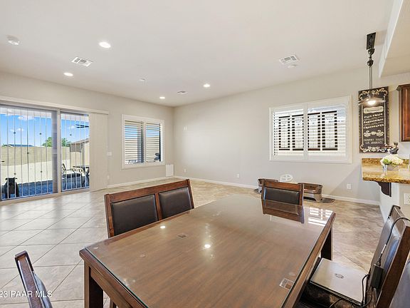 Incredible centrally located Bright Star energy-efficient Mandalay home on a premier lot located close to shopping, medical, restaurants, schools, and only 20 minutes away from Prescott! A beautifully covered front porch with an ornate IRON SECURITY GATE welcomes you to a home that offers ADDITIONAL SECURITY with SCREEN MASTER SECURITY screens on all windows and iron entrance doors in front and back. Custom wood blinds & diagonal-set tile throughout - No carpet. Storage is no problem with back yard shed, extended garage & multiple ceiling-mount garage racks. Accessible doors to front & master bedrooms plus master shower. Bonus driveway with 8' side gate offers additional parking for ATV, trailer, etc. This is just a small list of the many upgrades this home provides (see documents tab).