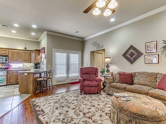 Leisure Lifestyle in this "better than new" and updated Garden Home. Recent Hardwoods in Living Room and Hallway, recent paint in kitchen and dining, recent Pergola added, lush landscaping and 2 patio areas! Sprinkler system water, mowing and lawncare provided by Homeowners' Assn. Refrigerator and Natural Gas Generator included. Abundant storage thru out, oversized walk in tile shower and massive walk in closet in Master Suite, jetted tub/shower in guest bath, gas logs in fireplace