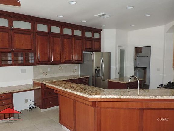 Beautiful 3 bedroom 2 bath solar home in college heights. Large kitchen with granite counters and stainless steel appliances. Spacious living room with fireplace. Backyard has a large covered patio with ceiling fans - perfect for entertaining or enjoying your morning coffee. RV Parking. Must see this renter's dream! Pets OK upon approval and additional deposit. 1-year lease. $2195 per month + $2195 deposit. Copyright Ridgecrest Area Association of Realtors. All rights reserved. Information is deemed reliable but not guaranteed.