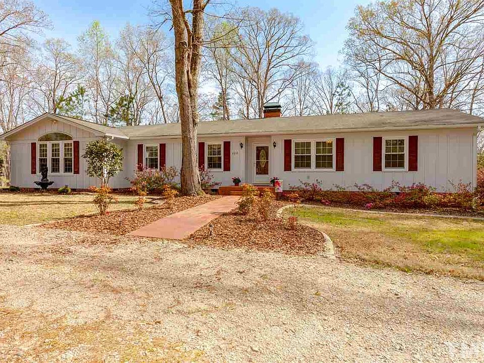 Private setting for this lovely brick ranch nestled on 2 acres. Enter to formal living room open to the dining room and kitchen with updated cabinets, granite counter tops and breakfast area with fireplace. The master bedroom is huge with vaulted ceiling, 2 walk-in closets, separate shower/tub and skylights give an abundance of natural light. Three more additional bedrooms w/ hardwood floors and 2 baths. There is a detached garage/workshop, over sized patio perfect for entertaining! So many updates here!