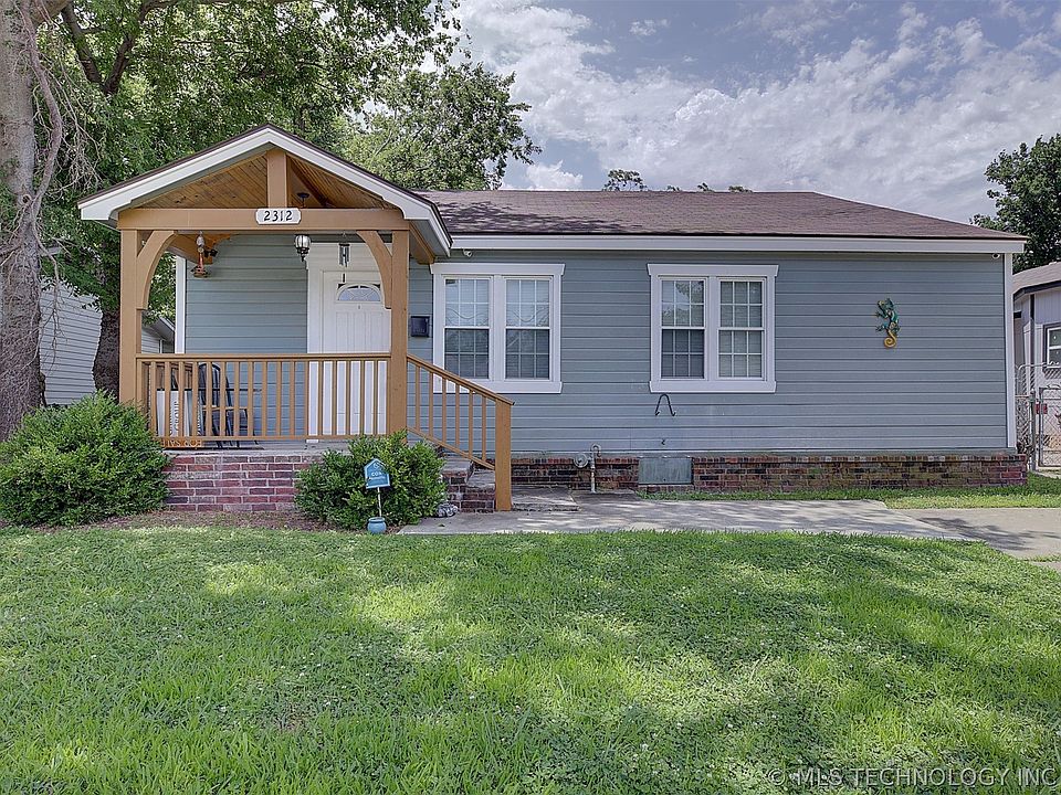 Tulsa West Side home with close access to I-244 and Hwy 44. Less than 10 minutes to downtown Tulsa. Welcoming covered porch. Remodeled kitchen with impressive cabinetry and granite countertops. The island has 3-bar seating, plus a spacious space for dining. Roof, HVAC, and exterior paint new in 2017. Wood flooring in the main living areas. Crown molding window trim. 3 bedrooms 1 and a half baths. Large fenced backyard. Shed stays.