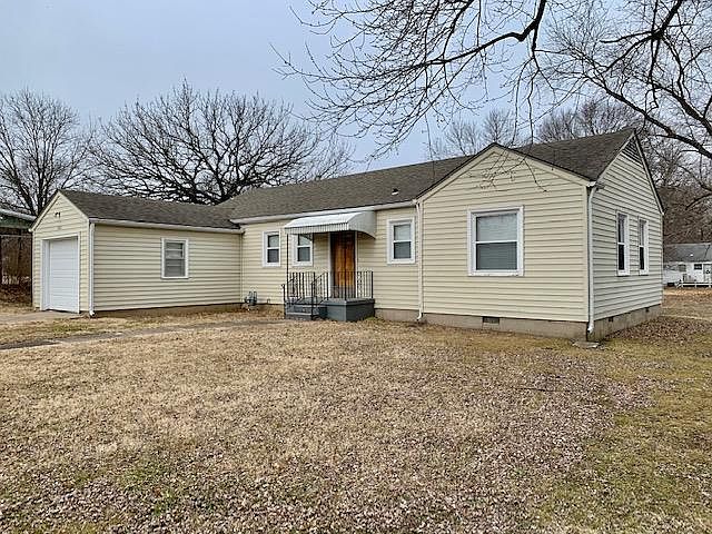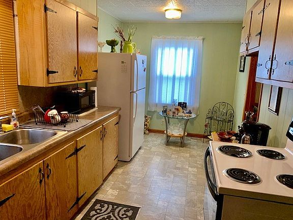 Cute house and feels bigger inside than it looks from the street. Neat and clean. Newer double paned windows. Roof in good shape. 1 car attached garage. Breaker box. One bedroom is large with room for bed and triple dresser. The other two bedrooms will fit a full size bed but not as large. Living room is good size and you could use one end as small dining. Kitchen is step saver and has room for small dining. Kitchen range and refrigerator will stay. Vinyl siding. Large yard. Bath is spacious with full tub and shower and it's in nice condition. Walk to Community Elementary School