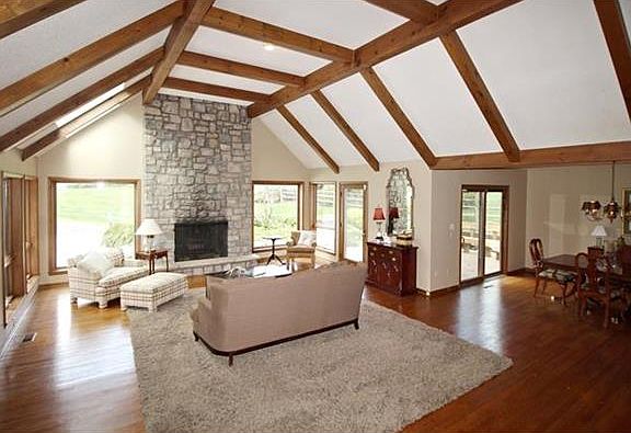 Picture pool parties, hot dog roasts & touch football games on rare, nearly acre lot in Leawood Estates. Side by side split w/4 beds +2 updated baths -main level has remodeled granite kitchen, casual & formal dining + enlarged, vaulted, beamed great room w/floor to ceiling limestone fireplace-walkout to deck, patio, firepit, inground pool+ sizeable treed yard-LL has 3rd full bath & family room w/fireplace + built in bookcases + computer station.
