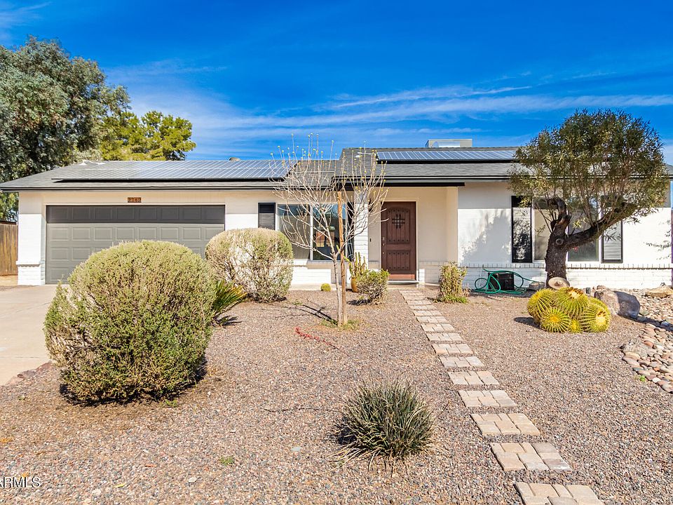 Welcome to this charming 3 bedroom, 2 bath home in Chandler AZ! You will be able to enjoy a low maintenance front and backyard with a sparkling pool, tile throughout the house and no HOA. The kitchen has been updated with brand new granite countertops, tall cabinets, and stainless steel appliances. This home features a spacious primary suite with a great size bathroom suite, and a large walk-in closet. Home has new doable pane windows, new recess can lights, fans, and both bathrooms and kitchen have also been renovated, plus it has a new roof that is only a couple of years old. Plus, those energy bills won't break the bank thanks to the paid solar panels! With fresh interior and exterior paint, this home is ready for you to move in today! come check it out today!