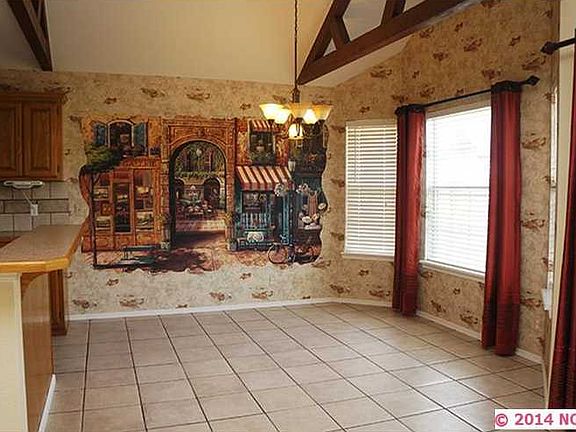 Immaculate home with large backyard. Ceramic tile floors throughout living spaces, open kitchen with eating bar, vaulted ceilings with beams, greatroom with woodburning fireplace. Large master suite with custom tile work. Newer roof, large shed.