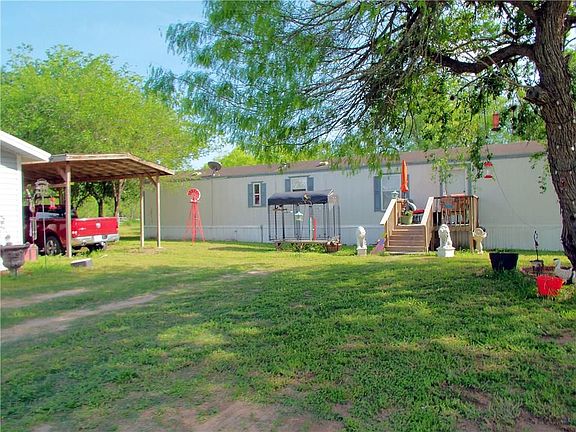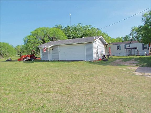 Country living with Nueces River frontage. Three bedroom, two bath 2007 Oak Creek Mobile home with front deck sits on approximately twelve fenced acres. A two car garage was built with additional room and plumbing for an efficiency apartment or a 'party' area. Front part of property is cleared, with patches of trees, while back part of property is brush to allow wildlife to flourish. At the river there is a nice beach area for swimming and fishing. Bring your cows, horses, etc., as there is plenty of room to roam on this homestead.