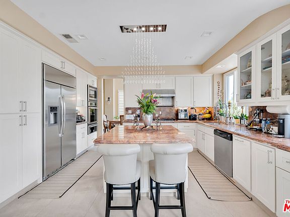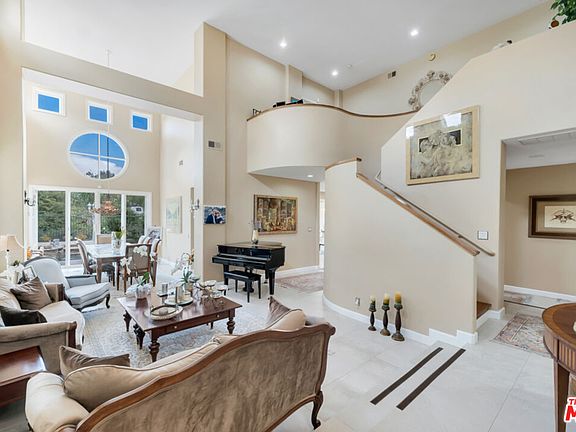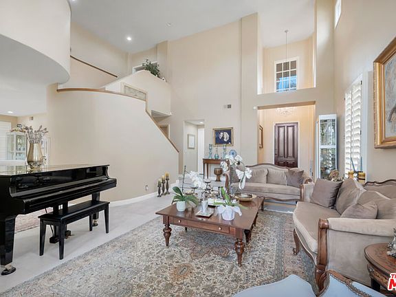 Beautifully updated property on a quiet cul-de-sac within the prestigious guard gated Bellagio community. High ceilings greet you as you enter into this light and bright home with custom finishes throughout, including an expansive chef's kitchen. Perfect for entertaining as the den and living room both open to a large yard area with pool, spa, built in fire pit, and custom bar. The den features a one of a kind wet bar, and easy access to the 3 car garage. Downstairs has a bedroom and en suite bath, as well as a powder room. Upstairs, you have three large bedrooms and two more bathrooms, including balconies on each side of the house. The primary suite features ample closet space and a Jacuzzi tub. Take advantage of everything Calabasas has to offer including the nearby lake, The Commons, and Calabasas swim and tennis center.