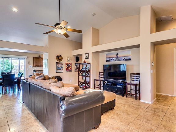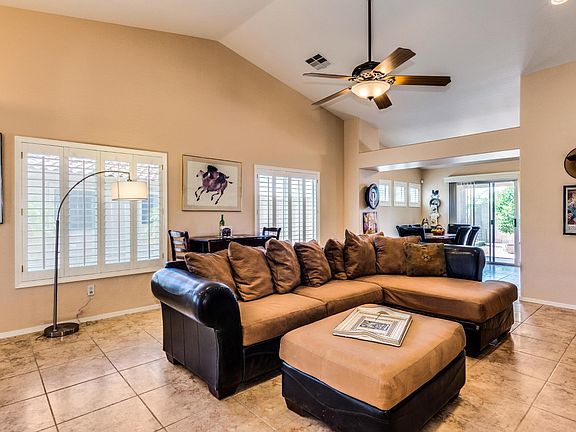 Spacious family room with vaulted ceilings and plantation shutters. The eat-in kitchen has an abundance of maple cabinets, quartz counter top, SS appliances. Seller is willing to inclued the refregerator and Washer/dryer. Must check out the spacious master bedroom it has private entrance to the patio, a sitting area and an archway that leads to the master bath. The bath has double vanity with Granite counter top, walk-in shower and walk-in closet. The backyard has a beautiful covered patio, firepit and mature fruit trees. Close to shopping, dining and the I-10 freeway. Call for a showing today!