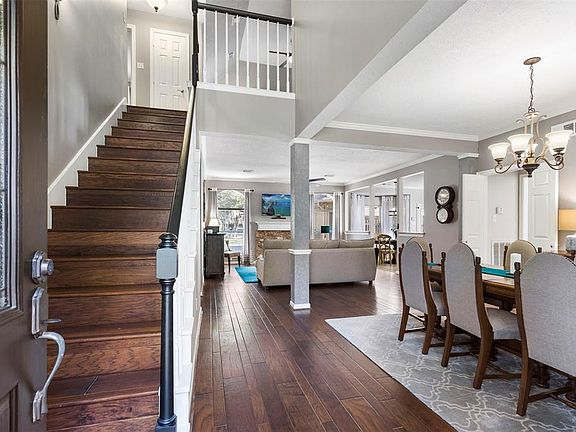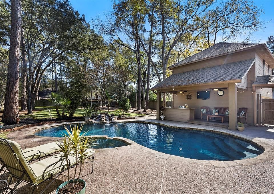 Charming well-maintained home sits on an over-sized lot in the friendly community of Northampton. Total livable space in the home and garage apartment is 3,036 sqft. This floor plan offers a two story entry, a formal dining room, and a large upstairs game room. The bright white kitchen presents a center island, granite counter tops, subway tile backsplash, stainless steel appliances and a spacious breakfast room. The first floor master bedroom includes an updated spa-like master bath with freestanding tub. Other updates include wide plank hardwood flooring in the main living areas and master bedroom, fresh paint, and updated door hardware. Over-sized wooded lot with a gorgeous pool with spa and summer kitchen. Two car detached garage with a spacious above garage apartment with full bath. New roof and water heaters replaced 2020. Sprinkler system (2013) and a mosquito misting system (2015). Enjoy the community parks, trails, playgrounds and pools. Children attend Klein ISD schools.