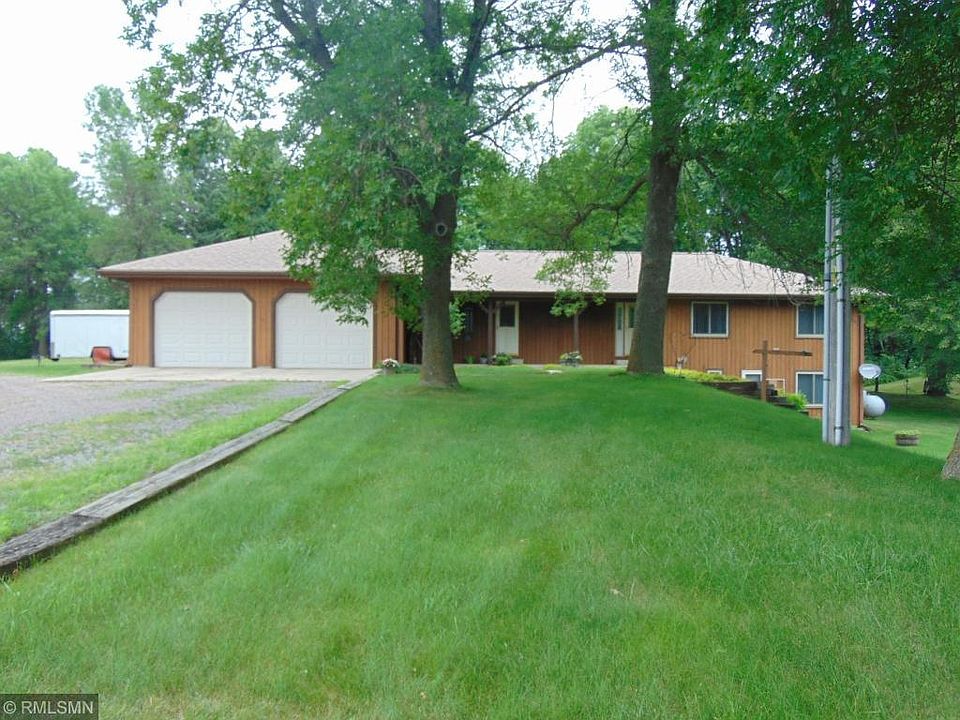 Big 5 BR, 2 BA, walkout rambler nestled in the trees with 22 aches on Lake Darwin on a blacktop Rd. Spacious top floor with big kitchen dining area, 3 good sized BR up with master bath, lower level finished with huge family room 2 more bedrooms and an office with a walkout lower level. 24 x 48 ft attached 4 car garage with half heated & insulated shop. Enjoy mother nature on Lake Darwin just a stones throw from Lake Washington & Lake Stella.