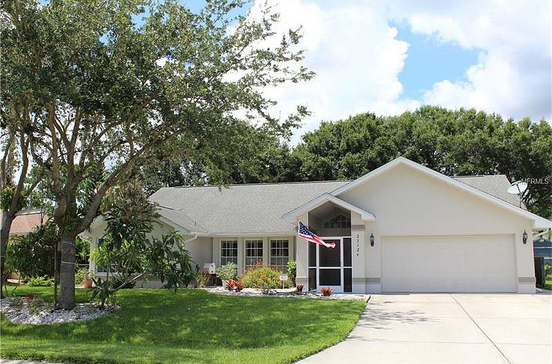 Original owners.. Selling this well-loved West Coast Builders built home. Beautifully maintained and a true pleasure to show. Many upgrades in this custom home. Large open floor plan with living and family rooms. All sliding glass doors pocket into the wall. This opens the whole house up to the outside. Such a great feature.. Huge screened lanai opens to a backyard park-like setting with large oak trees and beautiful floratam grass. Outside gazebo type structure for grilling and enjoying the backyard scenery. Bahama/Plantation shutters on all interior windows are very functional and also very pretty! Newer roof and A/C system, security system in place, 195'' well for sprinkling, concrete curbing, inside utility room with new washer and dryer (2015) beautiful laminate wood floors, stainless steel appliances, large bedrooms, walk in closets in every bedroom, pocket door separates guest rooms from the rest of the house, transom glass, new master shower door, upgraded vinyl product on lanai ceiling and entry ceiling.. This is a great house. Be sure to add this to your list of properties to show your buyers. You wont be disappointed!
