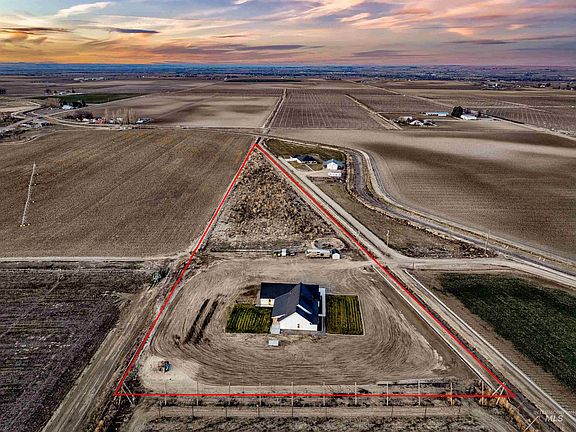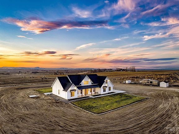 This custom-built masterpiece on 4.81 acres offers unmatched elegance and stunning Owyhee Mountain views. Step inside the inviting living room, perfect for relaxation, featuring an elegant electric fireplace. The chef’s kitchen boasts a sleek quartz island, top of the line appliances, a built-in Thermador refrigerator, induction cooktop, and a hidden Butler’s pantry for easy entertaining. The luxurious primary suite offers a spa-like retreat with a tile walk-in shower, heated floors, a freestanding soaker tub, and a walk-in closet that conveniently connects to the laundry room. A split bedroom layout ensures privacy and comfort, while the versatile upstairs bonus room with its own full bath provides endless possibilities. Expand your options with an additional 400sqft of unfinished space upstairs! The 3 car garage features plumbing and with 400 amp service and irrigation rights, the property is ready for future expansion for a shop or create a dream horse property with barn and riding arena!