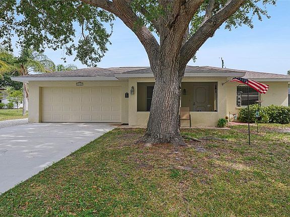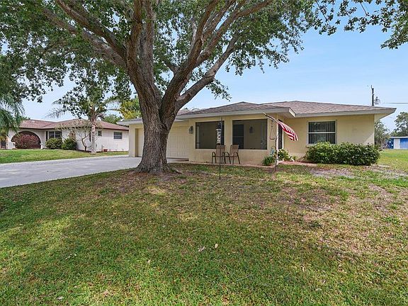 Situated on a generously sized lot in a quiet neighborhood, this classic Florida home offers numerous upgrades for easy living and peace of mind, with endless possibilities for making it your own. The two-bedroom, two-bath home features a formal living room and family room, bonus room and oversized two-car garage with plenty of space for storage plus a nice sized shed. Recent improvements include a new A/C with UV light, new ducts and smart thermostat (11/2020), new roof with one-time transferrable warranty (5/2021) and 3rd nail truss mitigation/retrofit (insurance savings), upgraded electrical panel (11/2020), replaced concrete driveway (3/2019) and replacement of the septic tank and drain field (1/2021). Inside, you'll find an assortment of new additions, including electrical outlets and switches, lighting and ceiling fans, kitchen sink and refrigerator, sink/counter in the master bath and toilets. See the MLS features attachment for a complete list of the many upgrades. Enjoy year-round relaxation on the enclosed 4 season lanai with vinyl windows and screens and the spacious backyard, which offers plenty of room for adding a pool. There is also a new crushed shell drive in the front for additional parking. Located in Port Charlotte, the home is close to I-75 and just a short drive to downtown Punta Gorda, restaurants, shopping and more.