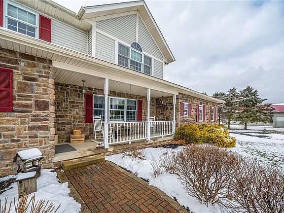 Spectacular property inside and out with all the bells and whistles. A dream floor plan, huge eat in kitchen with walk in pantry, formal dining room included in the Great room which is amazing with that rustic look and pellet burner. So cozy! Nice office area. Formal living room, the views out of windows are amazing, Master Bedroom on 1st floor w/walk in closet or nursery. enjoy the gas fireplace while winding down for the evening and also those double doors to the deck is just perfect for that morning coffee. Also a master bdrm upstairs with 2 other bdrms, full bath, laundry room on 2nd floor with one in the basement also. New roofs on everything in 2016. All garages could house 9 vehicles depending on size. large spacious basement plus extra cemented crawl space for great storage. Attached 2 car garage is insulated and finished. ALSO, detached 3 car garage with electric. A separate driveway to the Huge commercial Building 38x50, 200 amp, both furnaces will stay. The bar area 40x18, 14 ceilings, 3 12x12 doors. Walk up 2nd floor for office or storage. This property also Includes a70x30 lean too, small fenced pasture. The covered front porch plus patio, deck , hot tub ,gazebo and pool for entertaining. Pond with little sandy beach, deep end 8 shallow 4. Fenced n backyard. THE LIST GOES ON AND ON.. property surveillance. Great areas for 4H students, to raise those animals. ALL SIZES AND SQUARE FEET ESTIMATED.