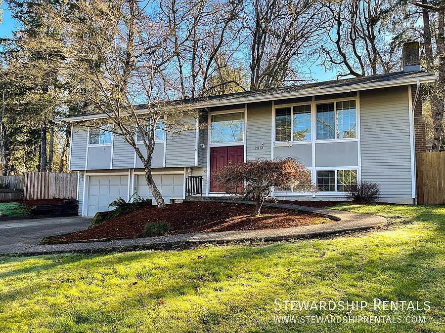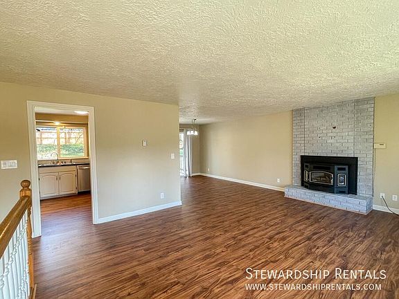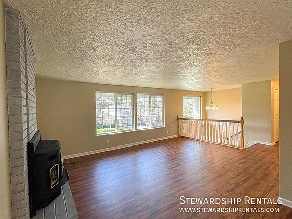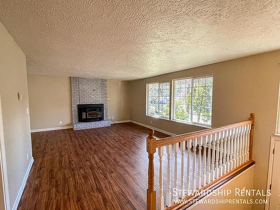 You'll love this gorgeous split level home located in a quiet neighborhood. This 4 bedroom, 2.5 bathroom home with a 2-car garage will give you 1,948 sq ft of generous space, including a deck and huge fenced yard. Main level has the living room with a decorative pellet stove, kitchen/dining room with slider to the deck, bathroom, 3 bedrooms including the master suite that also has access to the back deck Lower level includes a bonus room with a bedroom/bathroom and laundry room with access to the garage. Residents are responsible for all utilities including yardcare. **All new flooring is being installed** *Properties are only shown to approved applicants* Back Patio Back Yard Driveway Garage House Pets Allowed Quiet Neighborhood Storage Vinyl Windows Washer & Dryer Hook Ups