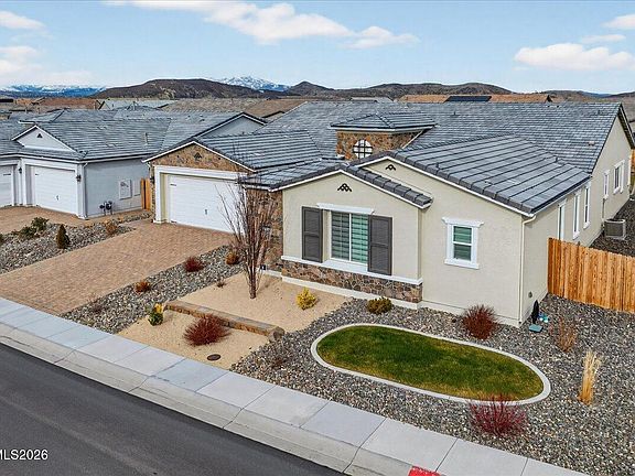 Sorrento Trail is the place to be! Located in the only private, gated community within Bella Vista Ranch, this single-story splendor offers luxury, convenience, and flexible room options to suit your customized lifestyle. At a generous 3,623 SF, this home enjoys one of the biggest floor plans with 4 Bedroom Suites PLUS a private in-law quarters with its own separate entrance and fully-equipped kitchenette. Recent upgrades include new window coverings, designer light fixtures, water softener system, and landscaping improvements. Other exceptional features include an upscale JennAir kitchen appliance package (with 6-burner stovetop, and built-in double ovens, beverage refrigerator, microwave, and dishwasher), an elegant waterfall quartzite island, smooth textured walls, vaulted ceilings, tremendous storage, and an impressive 3-panel sliding glass door to the fully-fenced backyard. The outdoor ambiance offers a warm invitation, whether it's the beautiful curb appeal, the courtyard entry, the covered paver patio, or the professionally landscaped grounds. Residents of Sorrento Trail enjoy exclusive access to the luxurious community clubhouse, featuring a state-of-the-art fitness center, outdoor pool with lap lanes and spa, indoor gathering rooms, covered patios, and expansive event lawns. This Sorrento Trail home in the Bella Vista Ranch community provides access to miles of multi-use paths, and is centrally located with less than 5 minutes to Nick Poulakidas Elementary School and Cyan Park (with playgrounds, sports courts, dog park, splash features, and more), 15 minutes to Reno-Tahoe International Airport, under 30 minutes to Mt. Rose Ski Resort, and quick access via Veteran's Parkway to shopping, dining, and nearby neighborhood amenities.