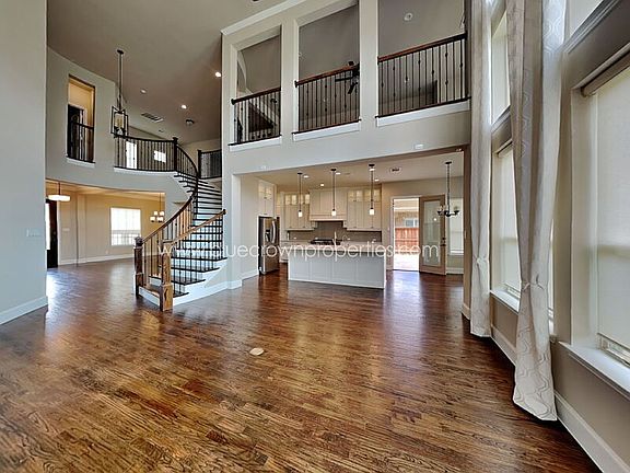 Lawn Care Included. Current alarm service must be transferred to tenants to use at tenant expense. Open living design plan, volume ceilings in living areas, extended covered patio, wet bar in oversized game room, spa like master bath, utility cabinets with sink plus mud room area, first floor guest suite, elegant sweeping staircase, and extensive hand scraped hardwood floors! Upstairs offers game room, media room, bar, 3 bedrooms & balcony for sunset views. Biking & walking trails. Frisco ISD. NO PETS NO EXCEPTIONS. Pest Control included. $195 Lease Admin Fee. Pet Details: NO PETS