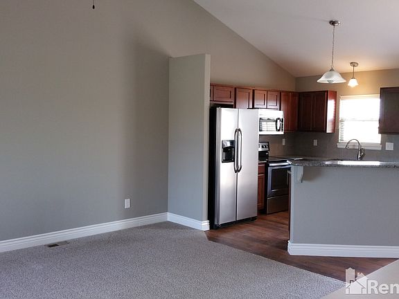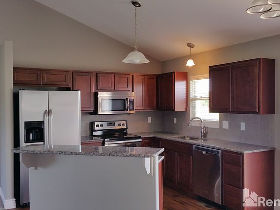 Kitchen - all stainless steel appliances including refrigerator with ice maker, dishwasher, garbage disposal, microwave and range. Kitchens are finished with beautiful granite counter-tops, this kitchen has a island and breakfast space to enjoy. Each skillfully designed twin home includes central heat and air conditioning, walk-in closets, window coverings on all windows, a spacious family room, dining room, extra storage room and a large, finished recreation room in basement, as well as utility room with washer and dryer hookups. All homes have new carpet in every room except the kitchen and bathrooms. Each individual home features a maintenance free yard, deck and porch as well as a 2 car garage with openers. Residents of Rock Pointe twin homes will also enjoy a crystal clear swimming pool as well as local ponds.