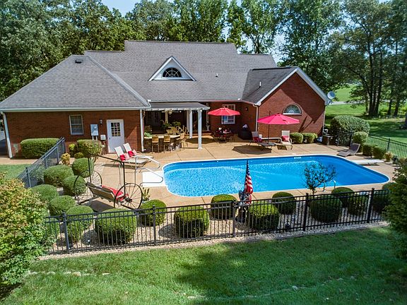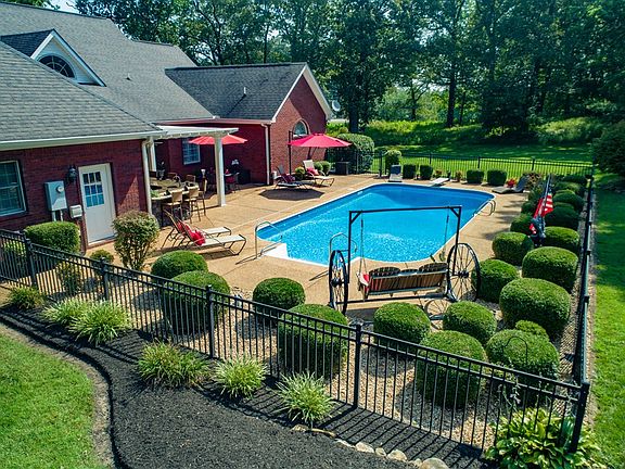 Custom Built Brick home, beautiful setting & immaculate yard!Features 18x36 salt water pool w/ outdoor kitchenette (sink & Frig) granite counter tops & covered porch.New CHA on main level July 2020.Kitchen features granite tops w/ eating bar, new gas stove top w/elec. oven, dishwasher in 2020. 9 ft. ceilings on main level w/ Living room vaulted featuring gas log fireplace.Master bedroom has sitting area & master bath has 2 walk-in closets.Upstairs recreation room has HD Projection TV. Basement den area has bar w/ sink & refrigerator & nice 20x9.11 storage area w/ 2nd washer/dryer hook up & mud tub. Walk out basement w/ garage 28.5x23.1, elec. door & passage door. 2nd level CHA new 2016.