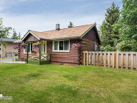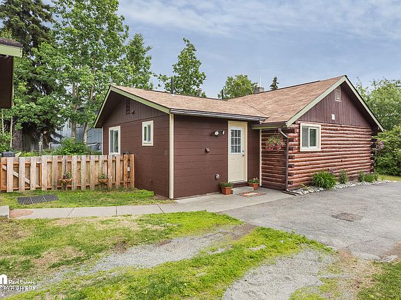 Rare find & full of charm! Remodeled classic log cabin captures the Alaskan living experience w/ all modern amenities. Beautiful open kitchen w/ granite countertops & SS appls, Brazilian hickory laminate floors, energy-efficient heating system & so much more. Oversized detached garage has alley access & there's extra parking on the side of the house. Nice size fully fenced yard! Great location!