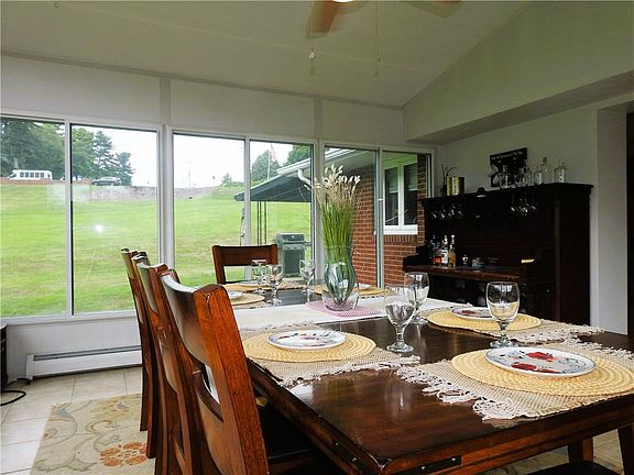 Welcome to paradise! This solid brick home has been nicely maintained and updated. Surrounded by almost 3 acres, life doesnt get any better! This sprawling ranch has 4 BRs and 2 full baths, making each floor one level living. The view from the sunroom takes you to a place of peace and tranquility. The 3 bedrooms on the main level are light and bright and adorned with new neutral carpet. The living room and hall are graced with impeccable original hardwood floors. The lower level comprises the family room, a large laundry room, a kitchen, a full bath, the 4th bedroom, and a living area. There is ample storage under the sunroom. The outdoor areas are amazing! The covered patio wraps around the front of the house, expanding the entertainment area. The detached garage is excellent for storage in addition to parking. An outbuilding, the Pony Barn is located on the property, equipped with a lean-to! All acreage is manicured and backs to woods.