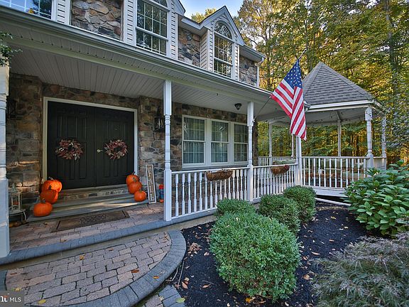 Milford Township Custom Single Family Home on 1.61 Acres now available for Sale!! This 4 bedroom 2.5 bath colonial home features a stone exterior, front porch with an attached gazebo, and double door entrance. On the first level there is a main floor bedroom with large windows and a closet. This flex room could also be an office, play room or even an exercise room. The dining room is conveniently located off the kitchen. The farmhouse kitchen features custom built cabinets, large center island, tile flooring throughout, gas cooktop, and a breakfast nook. The spacious and cozy family room includes a gas fireplace and gorgeous French doors that lead out to the Paver Patio. The main floor laundry room/mudroom leads out to 3 Bay garage. The second Floor has a large primary suite with tile floors, master bathroom with double vanity, large tile walk in shower, custom walk in closet, and vanity area. The 2nd and 3rd Bedrooms are nicely sized and complete the 2nd level. The walk-up basement is partially finished and has plenty of storage space. Additional features for this lovely home: laminate and tile flooring throughout, NEWER HVAC units, Sump pump (2022), Well pump (2021) , Well tank (2020), and Hot water heater (2021)! The secluded and peaceful backyard includes upgraded landscaping, a fire-pit and backs to the woods. Home is conveniently located to major routes (476), easy to access to Lehigh Valley area, Philadelphia and New York City! Do not miss your chance to check out this beautiful unique home!!
