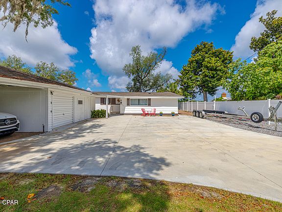 Take a look at this beautiful waterfront home with a new dock, seawall, and almost 1/2 acres of land. Great views of the Bay with pristine sunsets overlooking the Hathaway Bridge. Home has been fully remodeled and centrally located off 23rd Street, with minutes away from the beach. Deep access to the gulf from your dock. Home features an electric gate for security comfort. Large driveway with Detached garage and storage spaces. Walking into the main entrance, you are greeted by elegance with a remodeled kitchen to include stainless steel appliances and breakfast bar. Separate dining room with built in cabinets. Windows throughout bringing in natural lighting and views of the Bay. Large living room with an authentic wood fireplace, built in shelves, thus enjoying the tranquility of the Bay and Sunset. An additional bonus room/Florida room fully enclosed was added on at 9 x 9. It is surrounded by windows bring in natural lighting and full view of the Bay. Throughout the home you have wood flooring. Three bedrooms and 2 full baths, with separate laundry room. New seawall consisting of 75 feet of waterfront and close to 1/2 acres of property. The backyard incorporates a large custom wooden deck and new boat dock where you can sit and fish or take the boat out with Gulf Access. New custom vinyl privacy fence throughout.