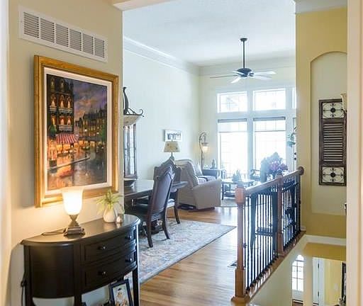 Gorgeous Staley Farms Villa speaks quality, with detailed tile work, wood floors, crown moldings & rich finishes throughout. No detail missed, w/ kitchen featuring gas range, stainless appliances, island, granite countertops & walk-in pantry for all the extras. Golf Course view from your kitchen sink or lounge chair by the fireplace. Luxurious master suite connected to laundry room for easy flow. Exceptional lower level finish w/ TV & Bose sound system that stay. Office upstairs or down. Plenty of storage space!