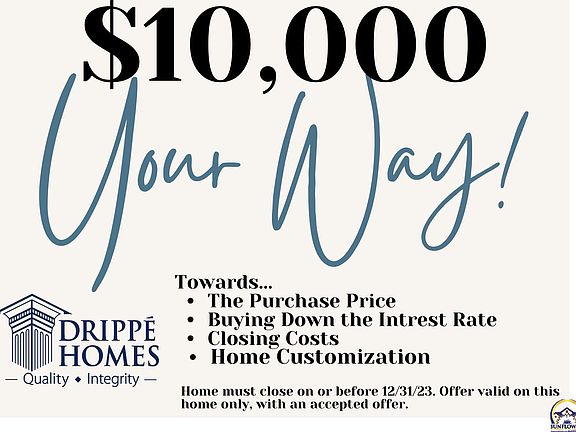 ** 10K YOUR WAY, if closed by 12/31/23*** 5 Bedrooms and 3 Baths- BASEMENT COMPLETELY FINISHED!!! Boasting an array of sleek finishes nestled into a half-acre lot in the Seaman school district, this Kyler Plan by Drippé Homes is the perfect place to call home. The entry flows into a luminous, open-concept living, dining, and kitchen area with an electric fireplace and rustic wood mantel. The kitchen has granite countertops, a designer picket tile backsplash, custom two-tone cabinets, and a suite of high-end stainless-steel appliances featuring a gas range from GE. This floor plan comes with 3 large bedrooms and 2 bathrooms on the main floor, a large walk-in closet in the primary bedroom, and a finished basement family room, 2 Bedrooms and 1 Bathroom. Give us a call today to discuss all that this amazing property has to offer. Move-in ready! $10,000 can be used towards: Price, Closing Cost, Interest Rate Reduction, Customization... YOU CHOOSE!!!