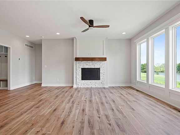 The Lilly - A reverse 1.5 story walk-out waterfront lot in Erika’s Place, a brand new subdivision and part of the 450 acre master-planned Twin Creeks Village. This stunning home includes 4 bedrooms, 3 full baths, a spacious flex room, a walk-out lot, and a picturesque view of a pond. The open floor plan features a drop zone entry from the garage, main floor laundry, and a master suite with an additional bedroom on the main level. The kitchen opens to a covered deck perfect for enjoying your morning coffee. The lower level walkout boasts a family room, two more bedrooms, a full bath, and a flex room for an office or workout space. With quality finishes and modern touches, this new home offers both style and affordability. Don't miss out on this incredible value! This walkable neighborhood will also have a community pool and clubhouse in Phase 3. Erika’s Place is adjacent to the brand new Platte County R-3 school campus featuring a middle school, career center and high school (coming soon). Steps from the trail head entrance to 10-mile Line Creek nature trail. Twin Creeks Village features Central Bank Sporting KC complex, Coopers Hawk Winery, Floor & Decor, Costco and numerous eating, retail and entertainment concepts soon to be announced!