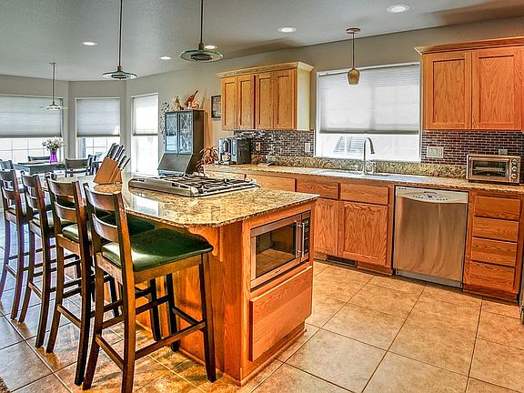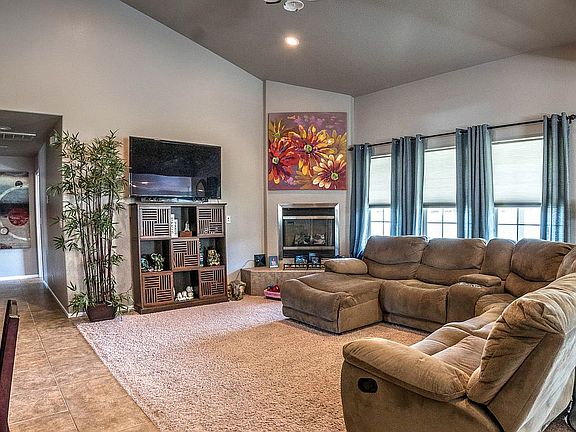 This property is an entertainer's dream! The home features an open floor plan with a vaulted ceiling and gas fireplace in the living room, stainless steel appliances and granite counters in the kitchen. Large master suite has a vaulted ceiling and huge walk-in closet. Outside there is a spectacular oasis including an in-ground pool with waterfall and jumping platform, hot tub and gazebo, covered patio, and exterior bathroom with shower. RV parking too!