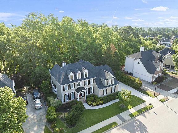 Beautiful Executive Home In Desirable Wakefield Golf Community! You will love the natural sunlight that fills this spacious home. Gleaming hardwoods on main floor with separate dining room, living room and open family room with soaring ceilings and tranquil view of wooded backyard with pool. Open and large eat-in kitchen with gas cooktop, HUGE bar top with gorgeous granite and newer appliances. Upstairs has new carpet, Owner's suite w/sitting area, large bath and private office. Bedroom 2 w/private bath, bedroom 3 and 4 w/Jack n Jill bath. Basement with new carpet is an Entertainer's Dream! Rec room with pool table and built-in wet bar. Bedroom 5, full bath and large Workshop/Utility room. Covered patio leads to private, wooded retreat with in-ground pool perfect for relaxing! Walk to schools, YMCA, Nature Trails. Minutes to REX, Shopping, Restaurants, Falls Lake. Easy commute to RDU, RTP, DT Raleigh.
